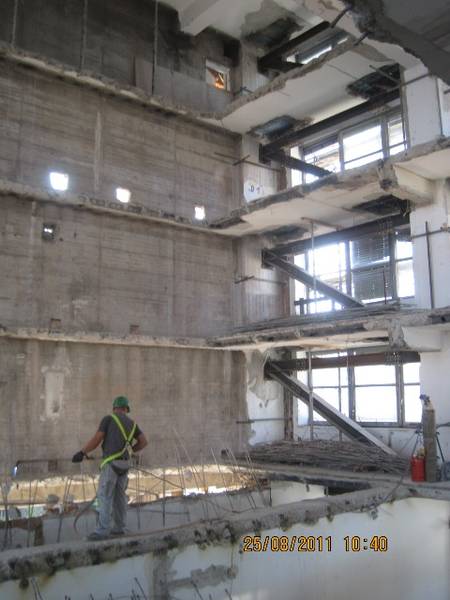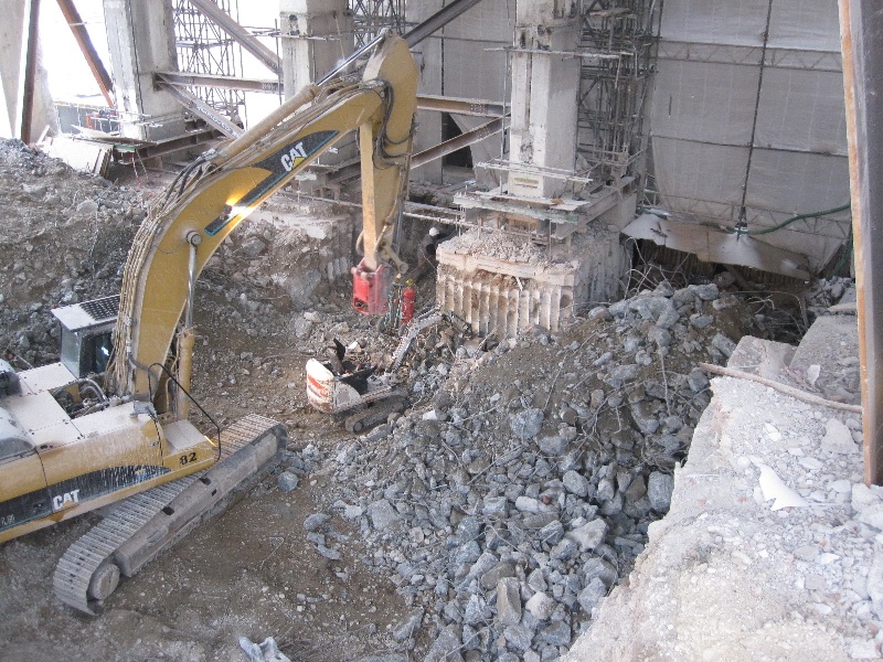 Der enge Zeitrahmen und die Abhängigkeiten forderten ein breites Spektrum an Abbruchtechnologien, vom filigranen Handabbruch bis hin zum Einsatz von Großgeräten für die massiven Bauteilen, und das von 56 Meter in die Höhe bis 15 Meter in die Tiefe.