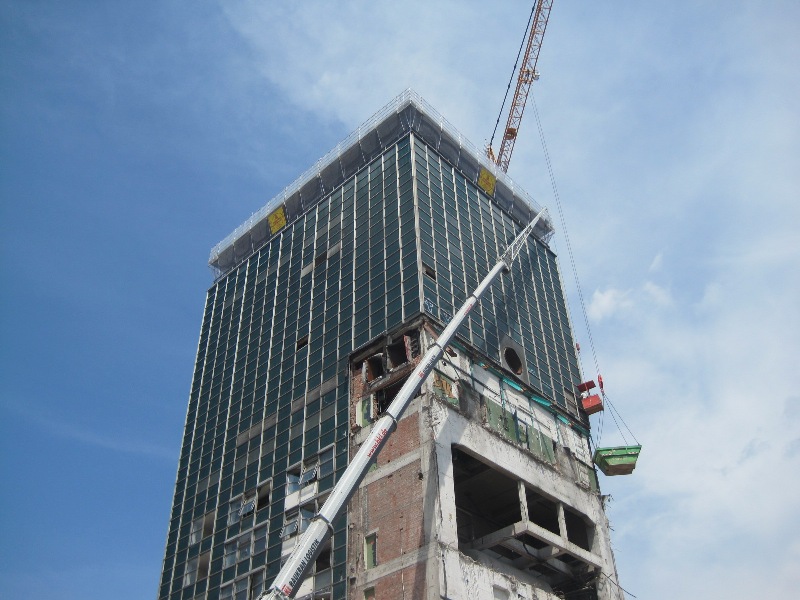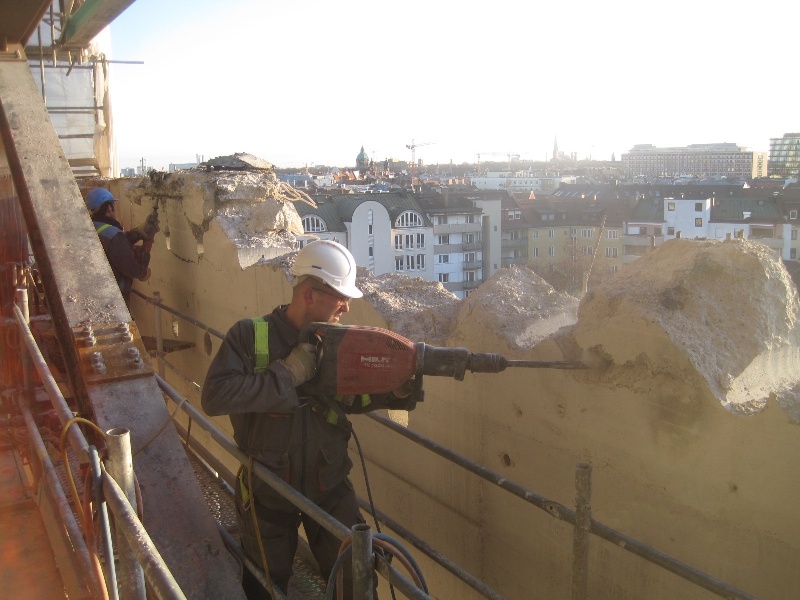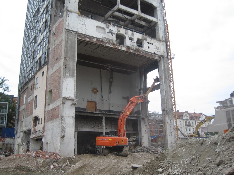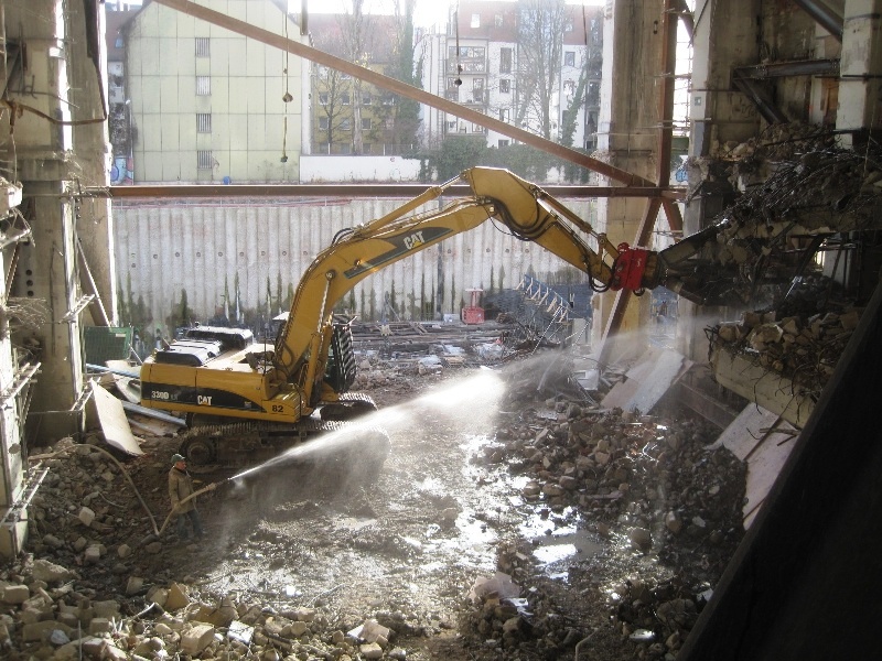 Im Herzen der Münchener Innenstadt entstehen auf dem Gelände des ehemaligen Heizkraftwerkes Müllerstraße exklusive Büro- und Gewerbeflächen und Luxuswohnungen samt infrastrukturellen Einrichtungen. Das besondere daran: Der 56 Meter hohe Maschinenturm wird erhalten und aufwändig zum höchsten innerstädtischen Wohngebäude umgebaut. Ebenso einmalig wie der Ausblick aus den oberen Etagen waren wohl die Abbrucharbeiten im Bestand, welche für die grundlegende Neugestaltung nötig waren. Der Auftrag hierfür wurde von der Bilfinger Hochbau GmbH an das ortsansässige Unternehmen Michael Nagy Abbruch& Rückbau GmbH erteilt, nachdem das minutiös ausgearbeitete Konzept in mehrstündigen Gesprächsrunden auf Herz und Nieren geprüft wurde, um einen reibungslosen Bauablauf zu garantieren.