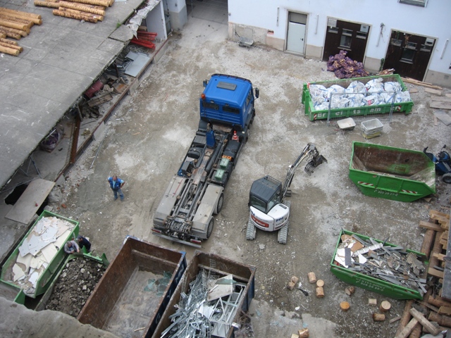Im Zuge des Rückbaus mussten diverse Schad- und Gefahrenstoffe fachgerecht separiert und entsorgt werden. So wurden ca. 150 t PCB-haltiger Putz, über 220 t teerhaltige Gußasphalte und Baustoffe, 12 t asbesthaltige Bauteile und über 30 t künstliche Mineralfasern (KMF) zurückgebaut, ständig überwacht und begleitet durch einen eigenen Gutachter in enger Kooperation mit Behörden, Bauherren und den Entsorgungsfachbetrieben.