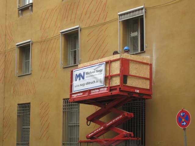 Die gesamte Logistik hatte sich an den besonderen Bedingungen, die eine Innenstadtbaustelle am Max-Joseph-Platz mit sich bringt, zu orientieren: nach außen sollte kaum Bauaktivität zu vernehmen sein, Materialab- und antransporte durften den Straßen(bahn)verkehr nicht beeinträchtigen, Schmutz und Staub galt es auf ein Minimum zu reduzieren.